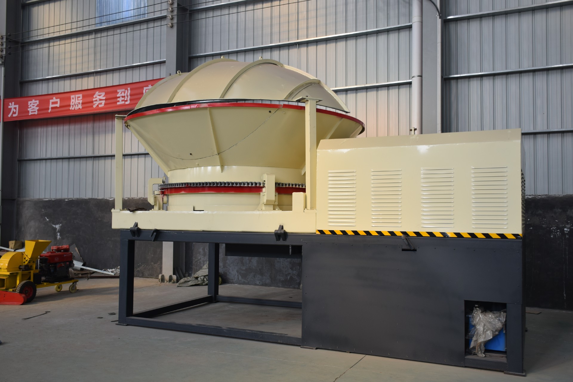 由(yóu)於設計簡單合理、耐用、生產效率高(gāo),經(jīng)推廣後效果良(liáng)好。整套設備由電動機帶動,噪音小,工作穩定,產量高,成品(pǐn)質量好,加工成本低,是生物質發電(diàn)廠(chǎng)和加工廠理想的(de)破碎產(chǎn)品。該設備可配套柴油(yóu)機(或發電(diàn)機組)加裝輪子移動,使用更方便(biàn)。該機為廣大用戶節省了劈木機,整個樹(shù)墩不(bú)需要劈木就可以直接破碎。
