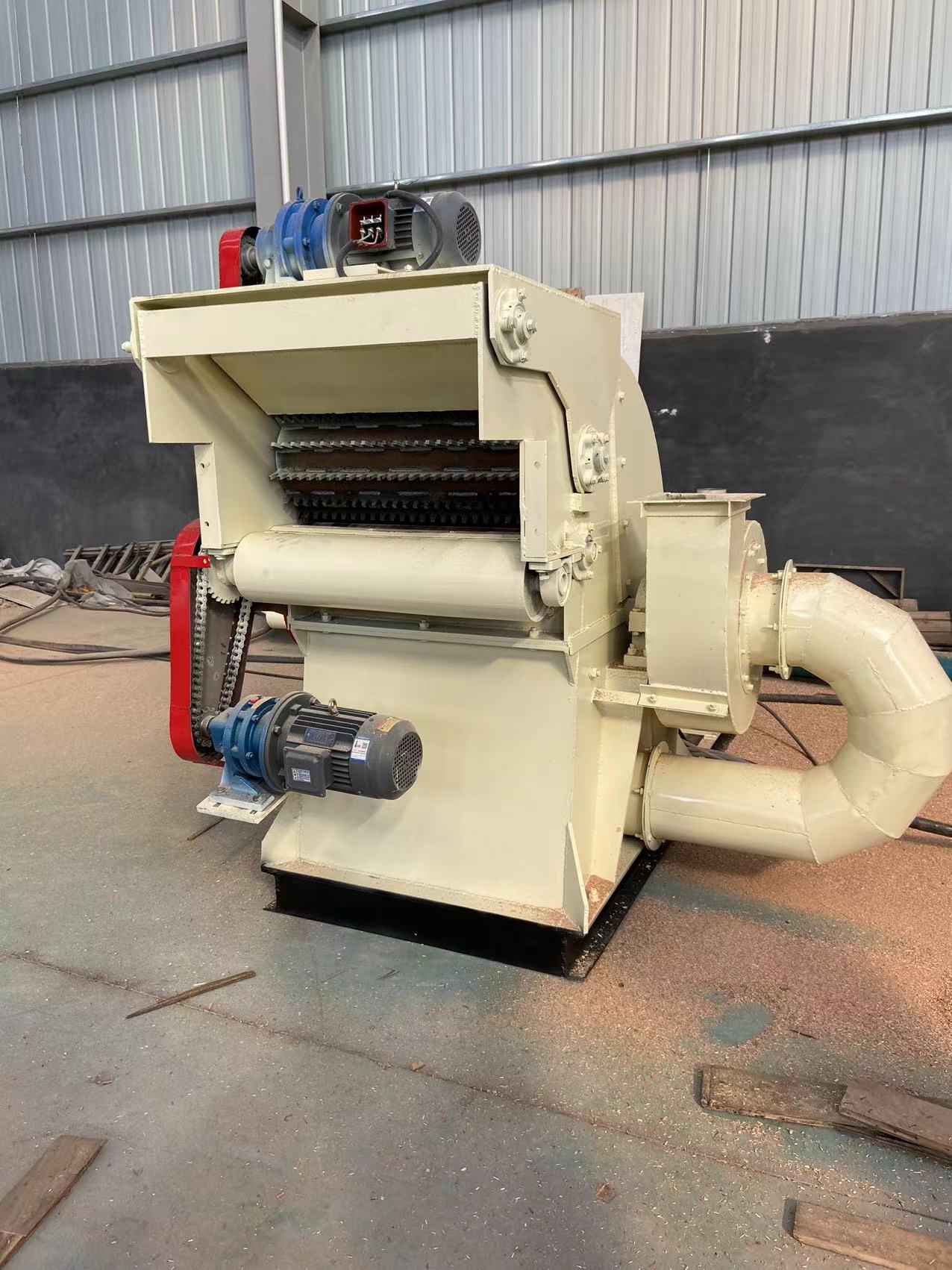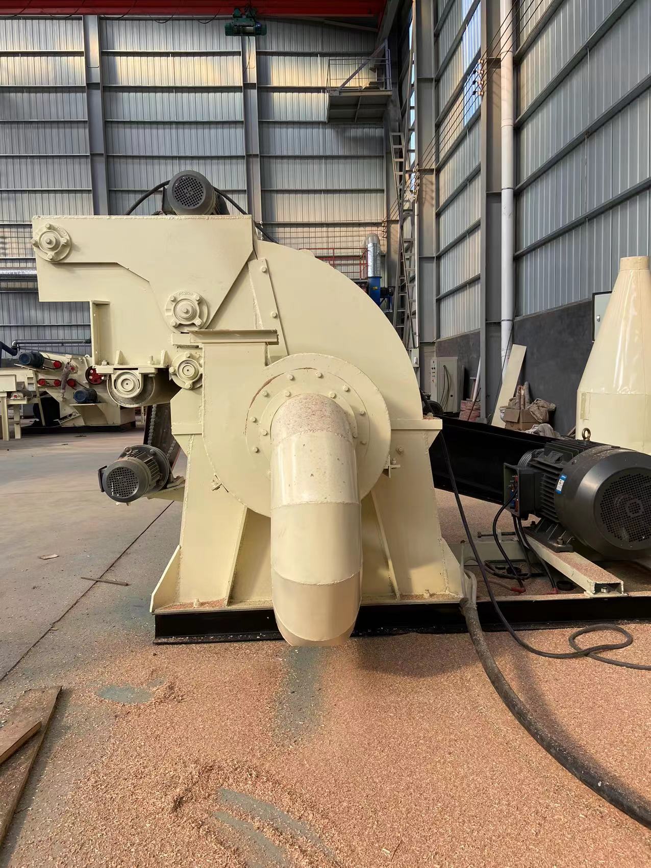 1、自動喂料,省時省力(lì)。物料由進料輸送機進行投料(liào),增加變頻(pín)器調節進料速度,可以針對體積較大或者較小的物(wù)料進行(háng)粉碎,不用再一根一根的把木材放進去,提高了生產效率,產量也越來越高;